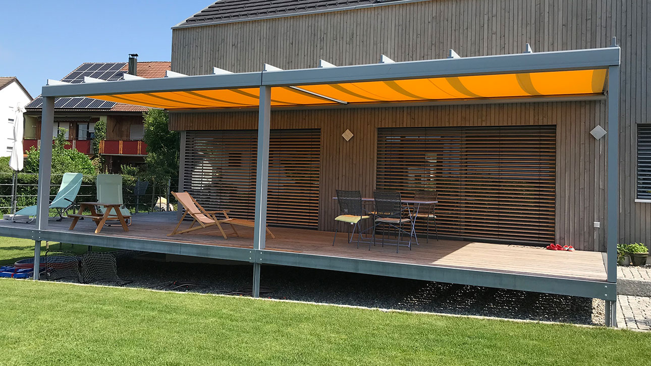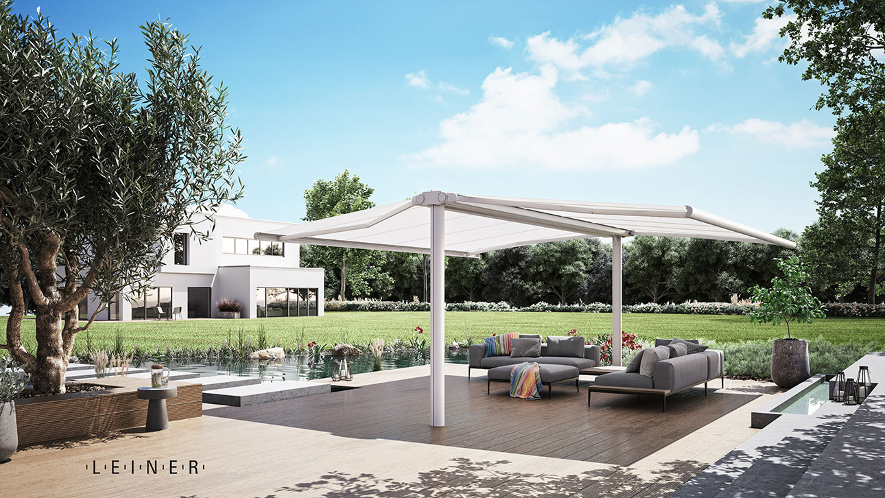 Pergola-Markisen von LEINER vereinen textile Leichtigkeit mit besonders hoher Stabilität – ideal für große Flächen, windige Standorte oder exponierte Lagen. Durch die fest verankerten Führungsschienen und Stützpfosten halten sie auch stärkeren Windbelastungen stand und bieten dabei eleganten, wetterfesten Sonnenschutz. Mit klaren Linien, modernem Design und vielen Ausstattungsoptionen lassen sich LEINER-Pergola-Markisen perfekt an Ihre Wünsche und die Architektur Ihres Hauses anpassen.
