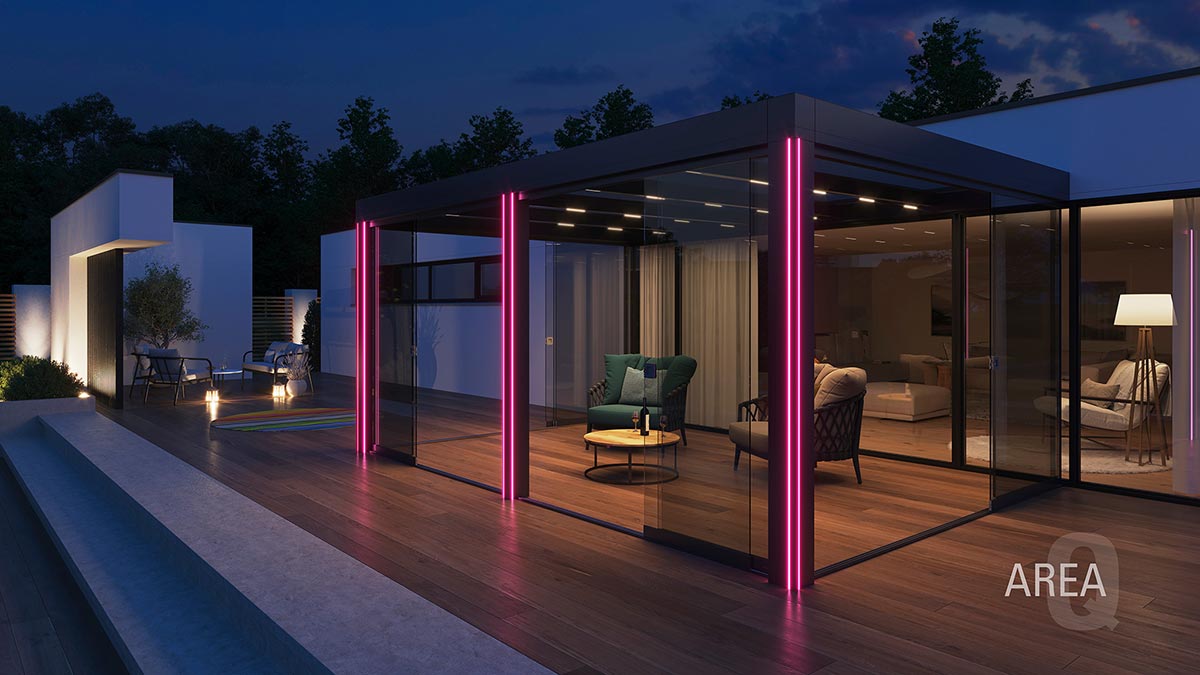 Dank flexibler Schiebeelemente und optional integrierbarer Beschattungslösungen wird Ihre Terrasse zum ganzjährigen Rückzugsort – hell, einladend und perfekt auf Ihre Bedürfnisse abgestimmt.