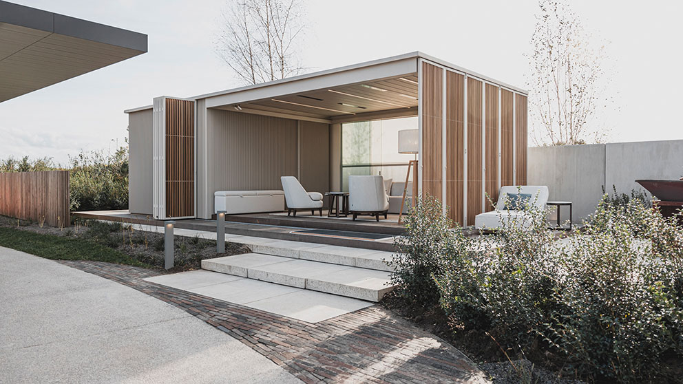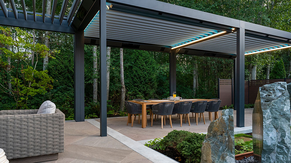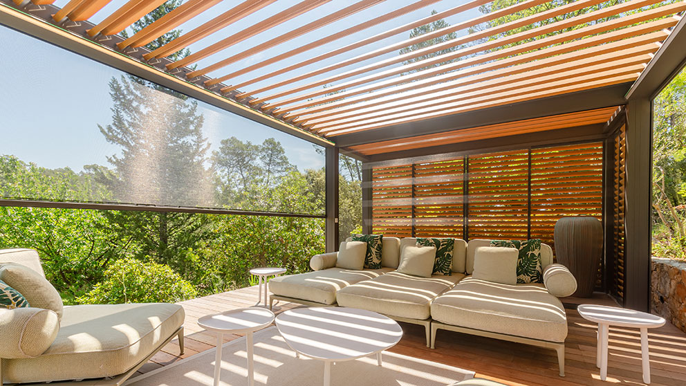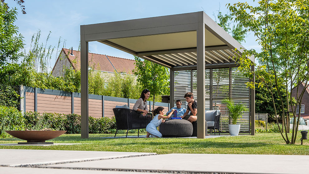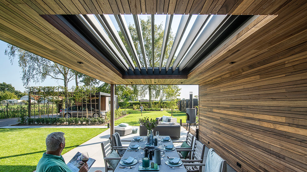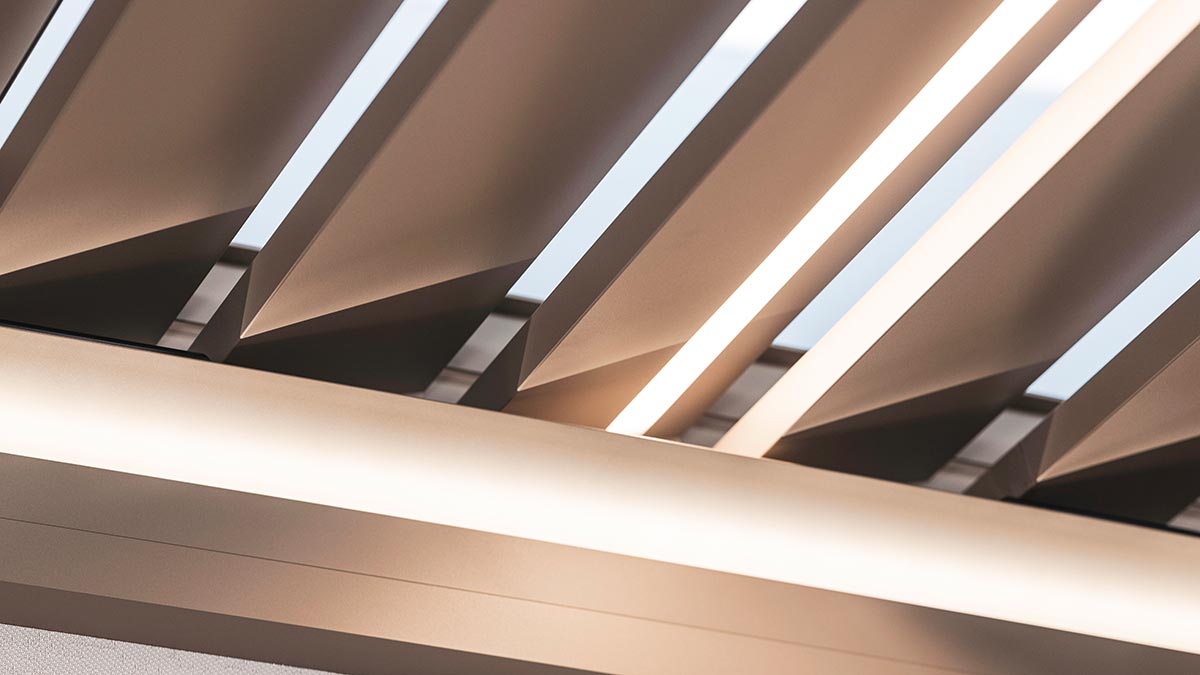 Die Wahl der Dachkonstruktion entscheidet maßgeblich über den Komfort Ihrer Terrassenüberdachung. Lamellendächer bestehen aus motorisierten Aluminiumlamellen, die sich je nach Bedarf flexibel öffnen und schließen lassen. So genießen Sie mal wärmende Sonnenstrahlen, mal angenehmen Schatten oder zuverlässigen Regenschutz – ganz nach Ihren Wünschen. Mit einem Lamellendach schaffen Sie nicht nur funktionalen Wetterschutz, sondern auch ein elegantes architektonisches Statement für Ihr Zuhause oder Ihre Gewerbeimmobilie.